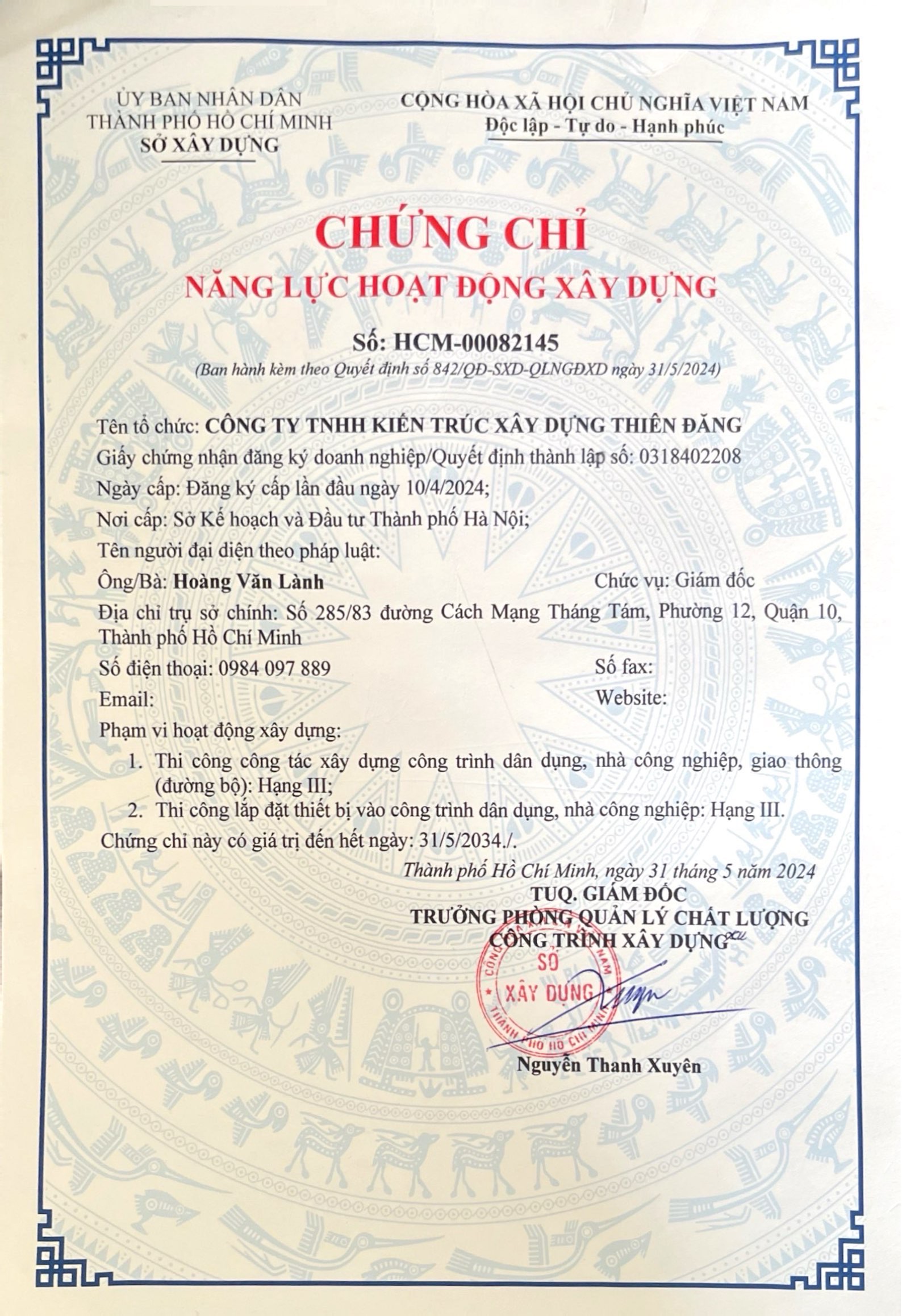 Công ty TNHH Kiến Trúc Xây Dựng Thiên Đăng cam kết sẽ luôn đồng hành cùng khách hàng từ những ý tưởng ban đầu đến khi dự án hoàn thiện, đem lại sự hài lòng cao nhất. Với phương châm “Xây niềm tin vững, dựng uy tín vàng”, Thiên Đăng tin tưởng rằng mỗi công trình là một tác phẩm nghệ thuật, thể hiện niềm tự hào và tâm huyết của toàn bộ đội ngũ.